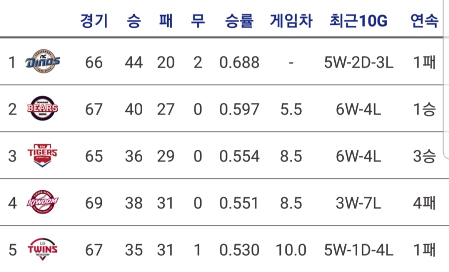 근데.. 올시즌 두팀이 엄청 깔아주며 승리 인플레가 심해서... 지금 3위여도 몇 번 연패만 하면 바로 8위로 갑니다...