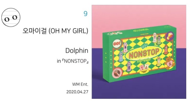 지난 <퀸덤>을 통해 더욱 큰 관심을 받은 오마이걸(OH MY GIRL)이 이후의 앨범 『NONSTOP』을 통해 택한 방법은 더욱 대중적이면서도 간결한 모습을 통해 그 관심을 더욱 증폭시키는 것이었다. 특히 타이틀곡 「살짝 설렜어 (Nonstop)」는 그러한 방식의 주된 요소로서, 보다 깔끔하면서도 대중적인 소리와 멜로디를 차용하여 많은 리스너를 끌어들였다. 그러나 같은 앨범의 수록된 「Dolphin」의 경우, 「살짝 설렜어」보다도 훨씬 더 오마이걸의 색채를 가득 담아낸 트랙으로서, 역시 많은 이들의 흥미를 끄는 동시에 오마이걸 특유의 색채를 더욱 강렬하게 각인시키는 역할을 맡았다. 물론 「Dolpihn」에서는 오마이걸의 가장 중추적인 요소였던 스트링 등의 활용에서 비롯된 매혹적인 멜로디는 존재하지 않았지만, 어쩌면 그보다도 중요한 멤버들의 보컬 활용과 다채로운 멜로디 운용이 눈에 띄었다.