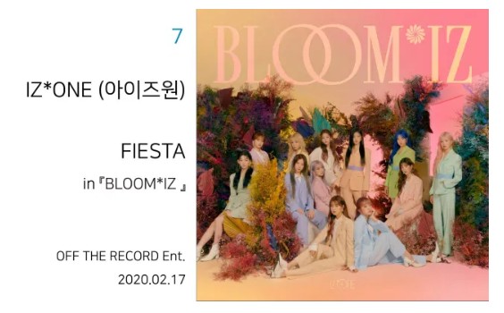 아이즈원(IZ*ONE)이 그려낸 꽃은 말 그대로 다채로웠다. 웅장하면서도 우아한 장미의 「라비앙로즈 (La Vie en Rose)」부터 쾌활하고 밝은 제비꽃의 「비올레타」까지, ‘꽃’과 관련된 지난 두 번의 활동에서 아이즈원이 보여준 다양한 모습은 분명 화려하면서도 다채로운 형태로 빚어졌다. 그리고 그러한 ‘꽃’ 콘셉트의 마지막을 장식하는 「FIESTA」는 그중에서도 가장 화려하면서도 정돈된, 제목과 마찬가지로 하나의 ‘축제’같은 곡이다. 물론 ‘축제’와 함께 꽃이 ‘만개’하는 순간을 그려내기도 한 「FIESTA」는 아이즈원이 지난 2 년간 걸어온 꽃으로 수놓아진 길 위에서 그 꽃들이 만개한 장면을 담아낸 곡으로 남는다.