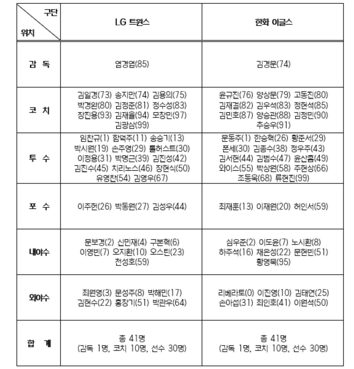 Subject [스포츠] [KBO] 2025 한국시리즈 엔트리 및 1차전 선발투수가 발표되었습니다 (수정됨)
