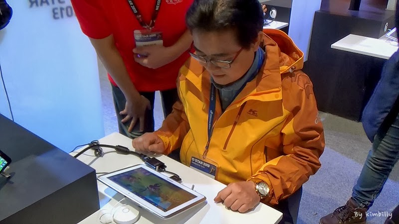 ▲ 넥슨의 영웅의 군단을 직접 체험 해 보는 전병헌 협회장.
