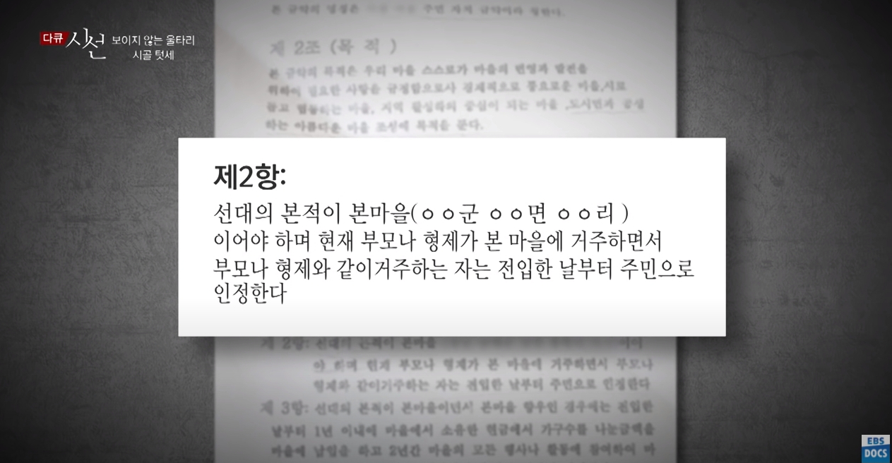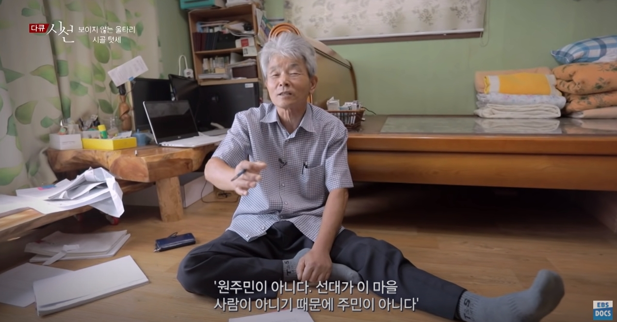 저희 가족 대대로 그 마을에 살았고 아버지도 그마을에 사시다가 타지역으로 진학하시고 직장도 타지역에서 근무하셨습니다. 퇴직하시고 그 마을로 들어가서 집 지으셨습니다. 아버지께 다시 들어왔다고 마을회관 건축비 내라하셨답니다. 백만원 내셨습니다.
