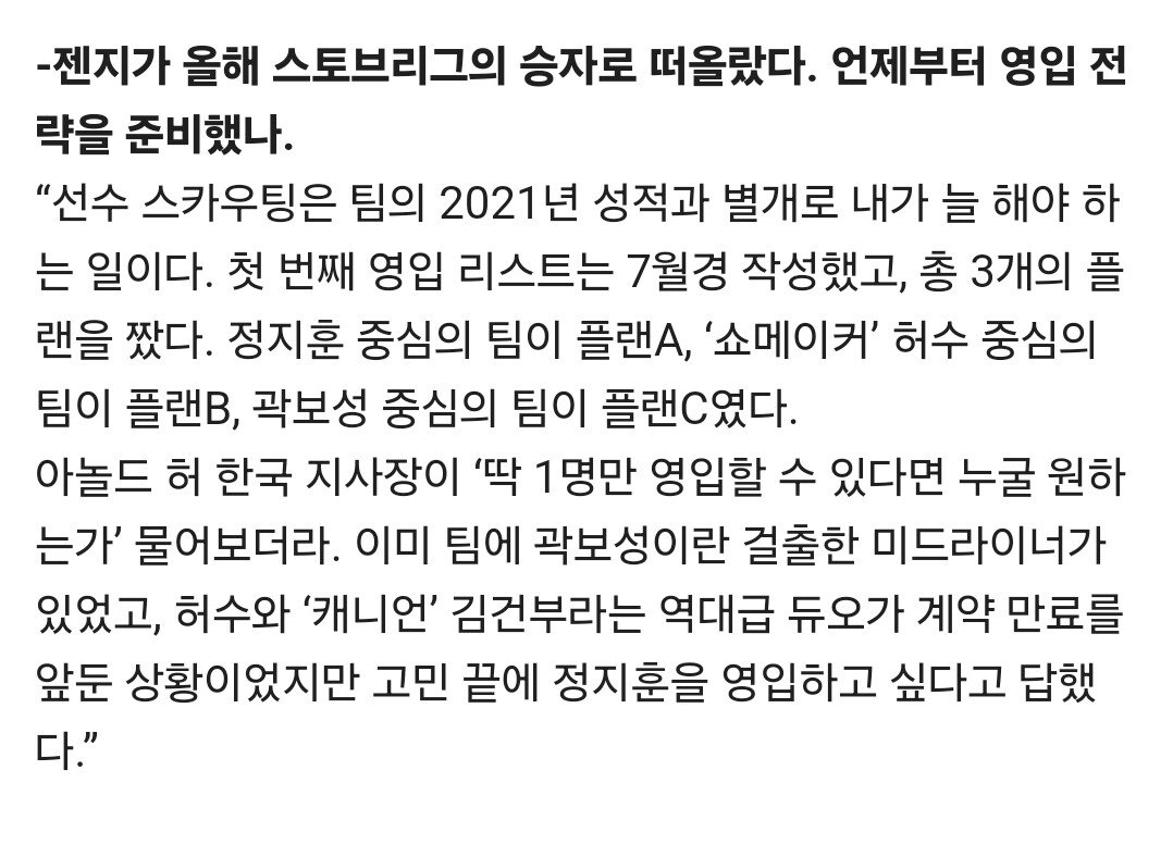 오늘만큼은 젠지랑 이지훈이랑 저 스카우터한테